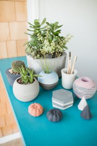 By using a variety of different molds, Julie can create planters in a variety of shapes.