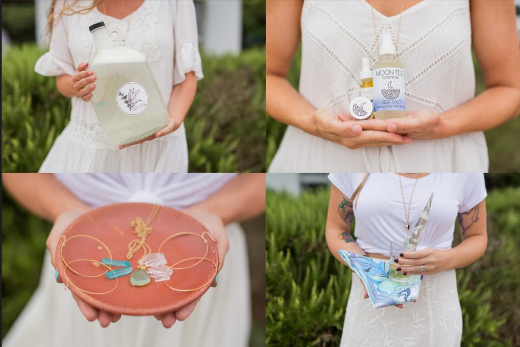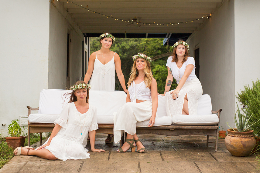 Founders and friends (left to right): Ariana Barnes of Wild Sage, Katelin Kight of Moon Tide Botanicals, Sarah Fredricks of Goldielockes and April Forbes of The Blue Moth Studio. Styled by Ryan & Rach Photography, with flower crowns by Page Roper of Flower Girls OBX. All photos by Ryan Moser.