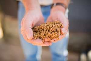 Cartwright holds a handful of spent grains from the Outer Banks Brewing Station.
